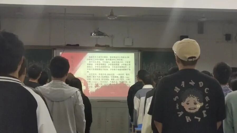 (团日活动同学们认真观看宣讲视频)