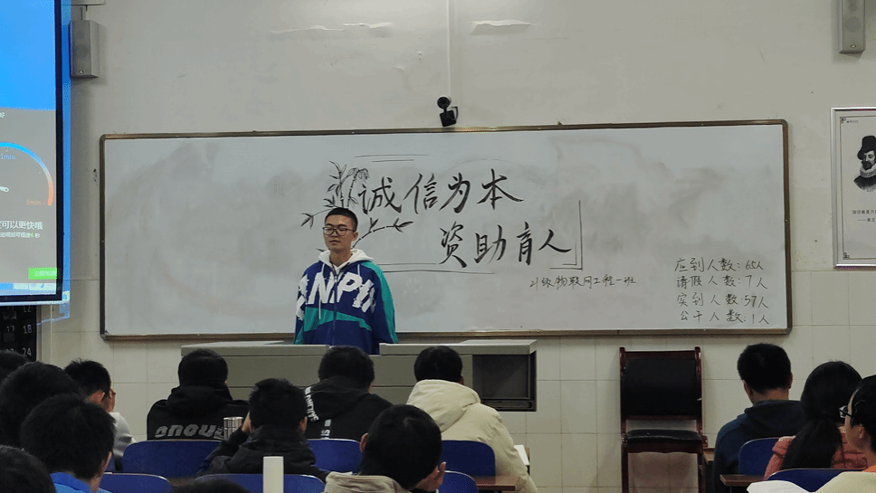 1、班长宣布班会的开始并发言。由班长讲述诚信为本、资助育人的相关概念和事项;