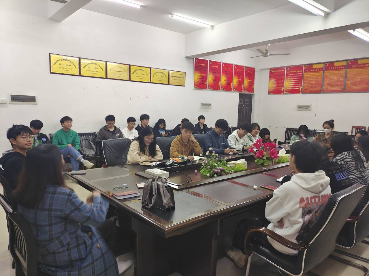 2021年11月15日,信息工程学院团总支在系办会议室召开了第三次例会。参与本次会议的人有我院团总支书记龙羽仪老师、团总支全体干部和新媒体全体干部。