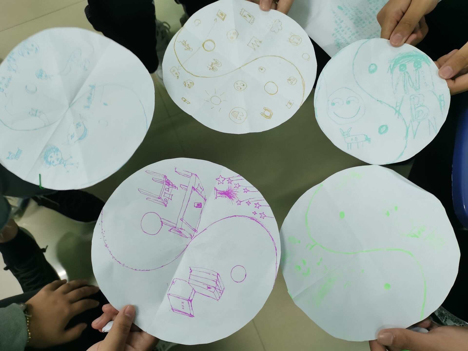 本次活动由有两个部分组成,活动第一个部分以“滚雪球”小游戏拉开序幕,通过自我介绍先让大家相互初步认识,活跃氛围,随后进行了“20个我是谁”的小游戏,每个人写下20条自我认识,完成后全员进行分享交流,帮助了大家自我剖析,进一步认识自我,紧接着来到了“画自我认识太极图”小游戏,大家用剪刀将A4纸裁出一个圆,用彩笔画出太极图的图案,左边画出内心中的自己,右边画出现实生活中的自己,这个游戏促进了各成员的自我了解并了解他人,增加我们的包容性去接纳.每个人的独特性。