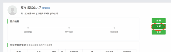 在“可签约学生”标签页面,点击学生列表右侧操作栏的“网签三方协议”按钮,即可对当前学生,发起邀约申请: