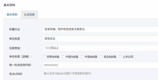 备注:基本资料部分可以直接修改,认证信息部分,如需修改需要重新发起认证,等待平台审核。