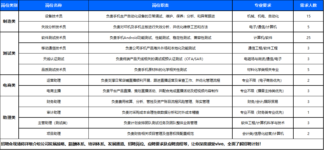 vivo智能手机2022届春季校园招聘简章